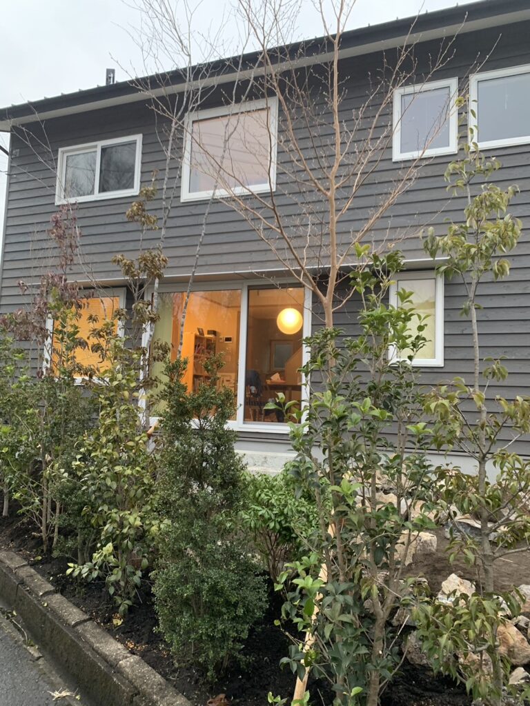 杉板外壁によく似合う庭